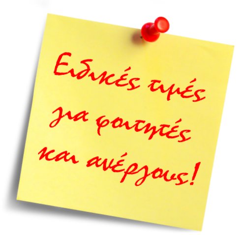 | ΕΙΔΙΚΕΣ ΤΙΜΕΣ ΓΙΑ ΦΟΙΤΗΤΕΣ ΚΑΙ ΑΝΕΡΓΟΥΣ |